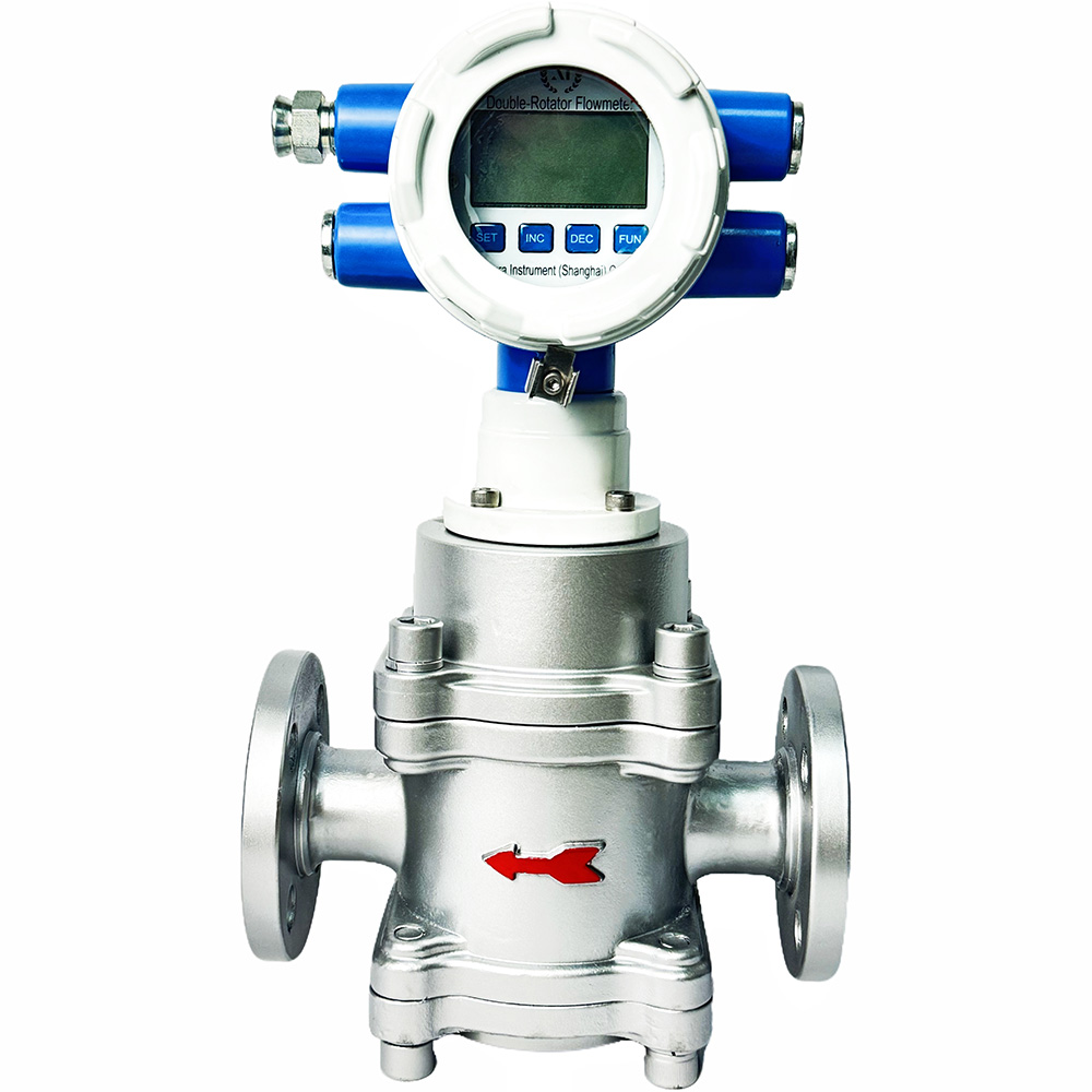 As a type of volumetric flowmeter, the double-rotator flowmeter has the characteristics of mature technology, good stability, and high accuracy. Electronic counter can increase signal output, communication remote transmission, temperature and pressure acquisition functions while providing flow measurement, and can also perform mass conversion on fluids with stable density. Electronic counter also achieves automatic conversion of multiple units, meeting the measurement habits of different countries.