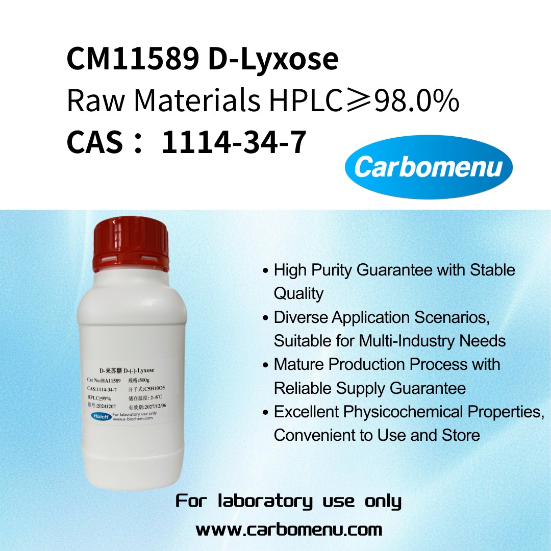 High-purity D-Lyxose (CAS: 1114-34-7, Cat. No. CM11589) is supplied at ≥98.0% purity. As a natural monosaccharide endogenously present in the human body, it serves as a critical energy source for various biochemical processes. Naturally found in fruits, vegetables, and dairy products, D-Lyxose is also used as an ingredient in certain pharmaceutical formulations. Additionally, it can be synthetically produced in laboratories and is widely applied in scientific research. We offer flexible packaging options (1kg, 25kg) and customization services for large-scale orders to meet diverse application requirements.