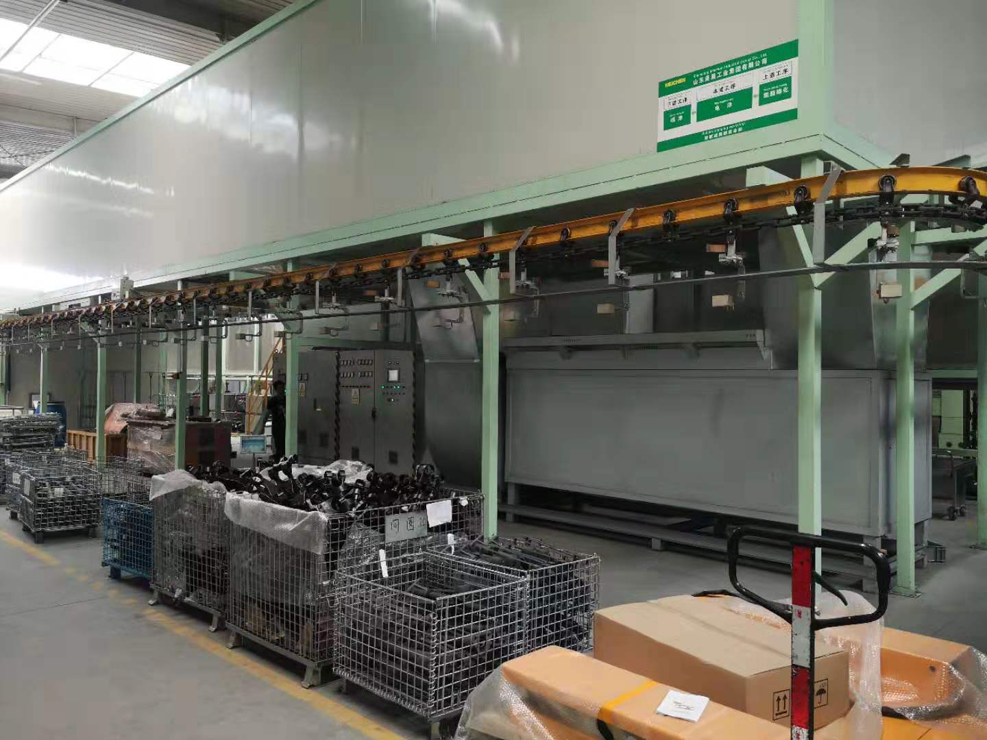The Electrophoresis Production Line is an advanced, environmentally friendly automated coating system based on electrochemical principles. It works by causing charged paint particles to migrate directionally under an electric field and deposit onto the workpiece surface, which acts as the opposite electrode, forming a uniform, dense, and exceptionally adherent organic coating. Our provided electrophoresis line is an integrated turnkey project, typically comprising fully automated pre-treatment (degreasing, phosphating, passivation), the main electrophoresis tank system (including rectifier power supply, circulation filtration, heat exchange), multi-stage ultrafiltration closed-loop rinsing, drying components, and exhaust treatment units. The line utilizes a centralized Programmable Logic Controller (PLC) for control, enabling fully automated handling of workpieces from loading to unloading. It is the core equipment for obtaining high-quality anti-corrosion and decorative coatings.