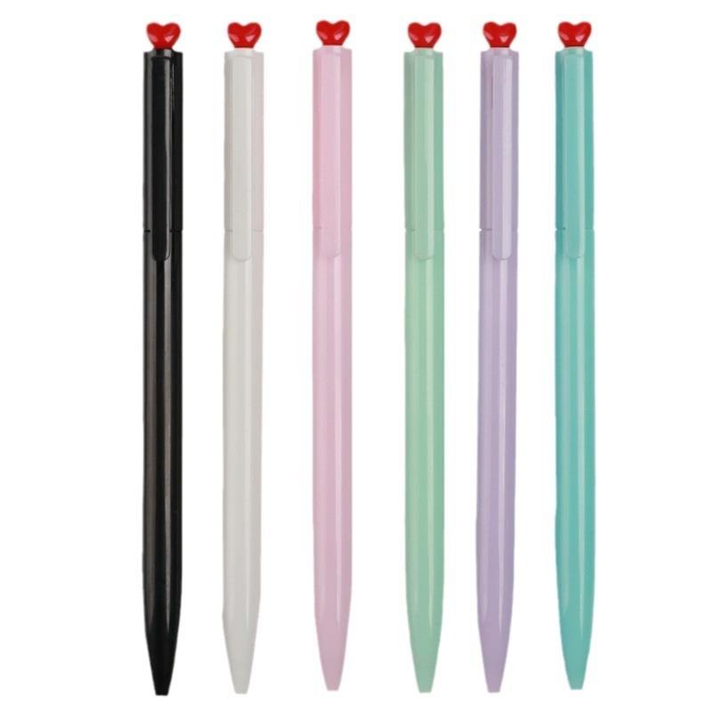 1.Retractable gel pens topped with 3D heart accents for a playful, stylish aesthetic.2.Offered in 6 soft matte colors, including classic black and pastel tones like pink, mint, and lavender.