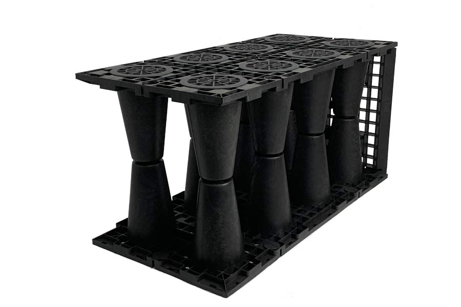 PP plastic modules are injection-molded from polypropylene. They can be interconnected to form an underground water storage tank.