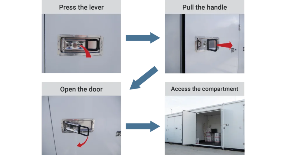 Z-Box doors are easy to use. Ease of use was therefore factored into the design of our Z-Box container. With its innovative design, accessing stored contents is as easy as unlocking the lock, and opening the door.