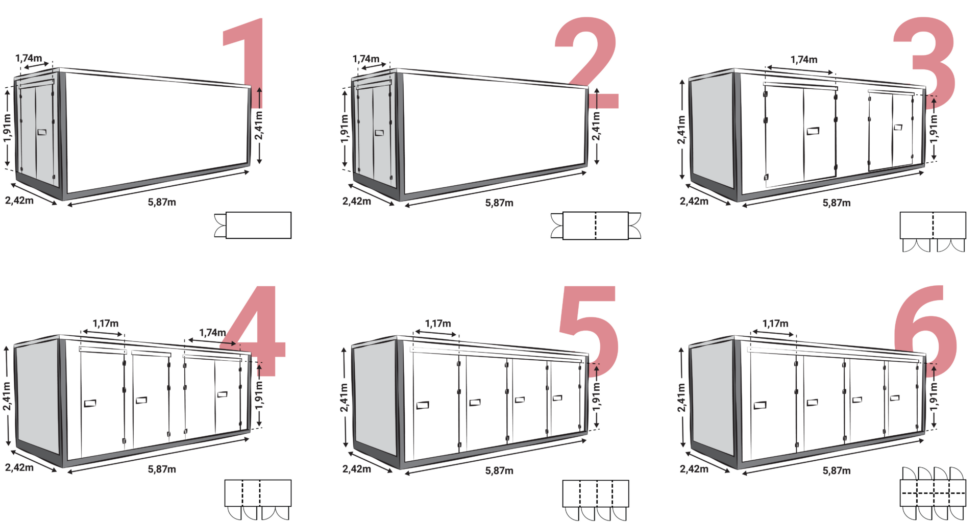 Our Z-Box is designed by self storage experts to be outdoors 365 days a year. The durable and well-secured containers look neat, are easy to use and come in six different models. Ranging from containers with one central access door to containers with as many as eight doors. As a result, they can be completely divided into different compartments that can be easily separated from each other.